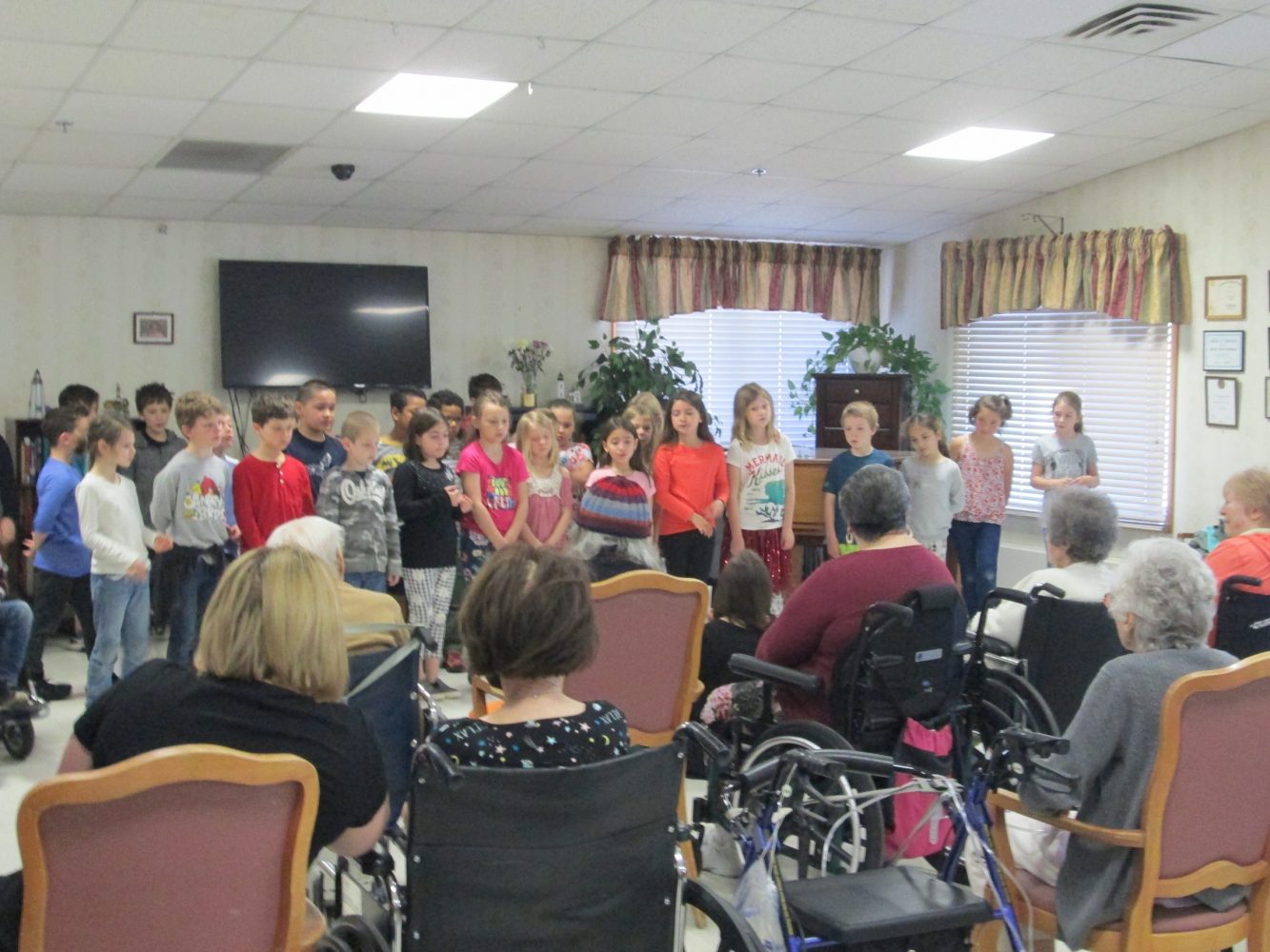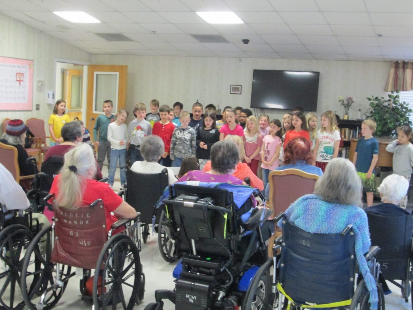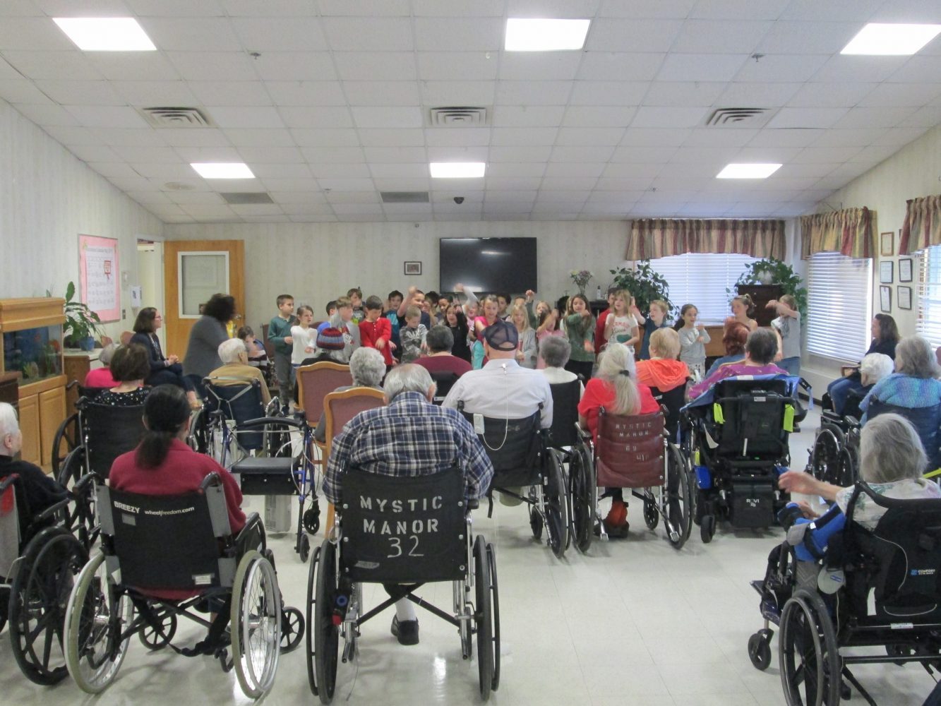 Residents at Mystic Healthcare enjoyed a play performed by the SB Butler School 2nd graders.